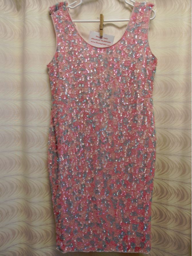 Our client brought in this short sequin cocktail dress for reconstruction since it was too tight around the bottom and top area. Below is the dress taken apart.